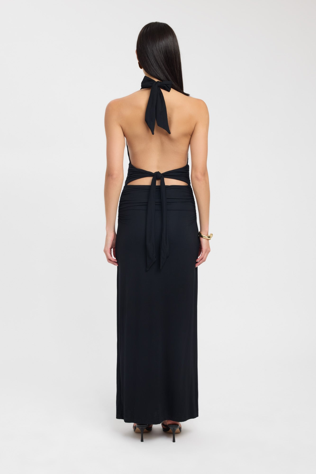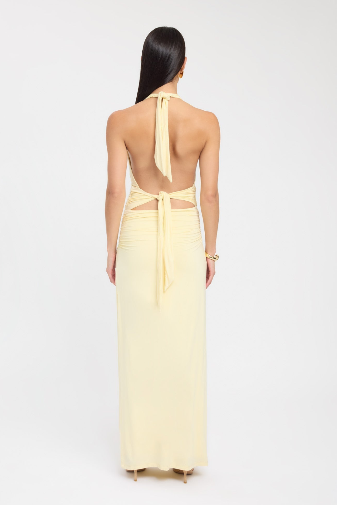 Delicate ruching at the waist sculpts your figure, while the open back design adds an elegant, eye-catching touch. Made from stretchy, comfortable fabric, it allows for freedom of movement — so you can dance the night away without ever sacrificing style.